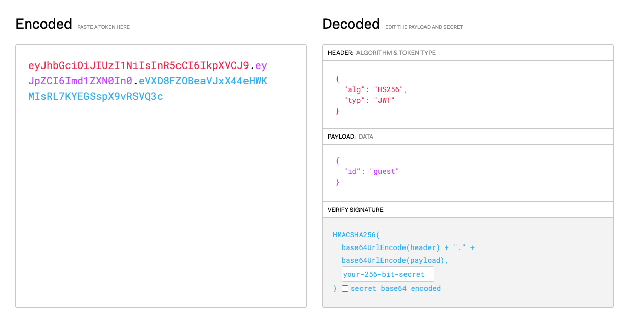 id 부분을 guest에서 admin으로 바꾼 후 EditThisCookie로 변조된 JWT 값을 넣어줬다.