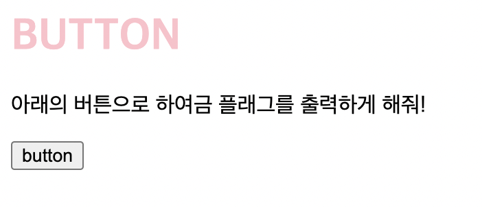 해당 url로 이동하면 "아래의 버튼으로 하여금 플래그를 출력하게 해줘!"라는 문자열과 함께 1개의 버튼을 띄워준다.