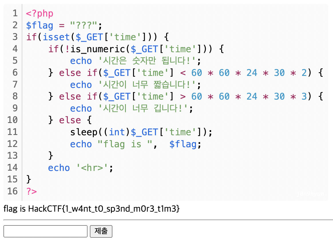 is_numeric 함수는 지수 표현을 허용하니 우회가 될테고, sleep 함수는 int형 변환 과정에서 소숫점이 짤리면서 5가 되어, 결과적으로 5초만 기다리면 flag가 나오는 현상이 발생할 것이다.
