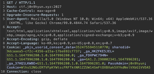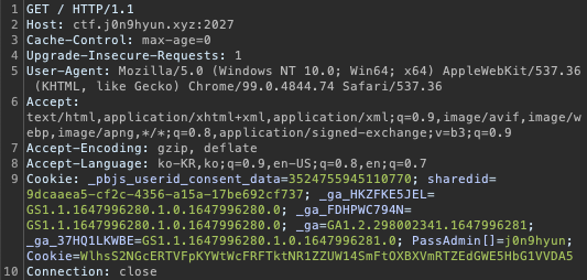 인코딩된 값을 쿠키에 넣어 아래와 같이 http request를 보내보았다.