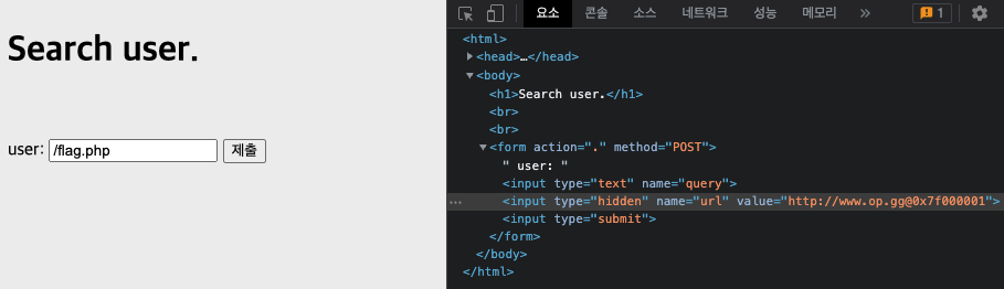 변경한 후 입력 칸에 flag.php를 적어 /flag.php로 이동하려 시도해보았다.