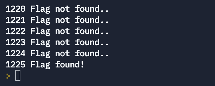 import requests URL = "http://ctf.j0n9hyun.xyz:2025/?page=" for i in range (1, 100000): response = requests.get(URL+str(i)) if "HackCTF" in response.text: print(i, "Flag found!") break print(i, "Flag not found..")스크립트를 계속 돌리다 보면 1225번에서 Flag를 발견할 수 있다.
