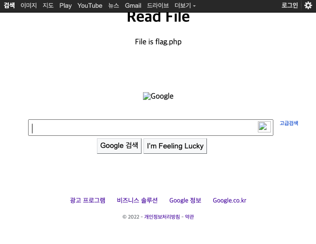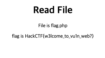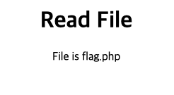 Read File 이라 큰 글씨로 쓰여져 있고, File is flag.php라고 작은 글씨로 쓰여있다.